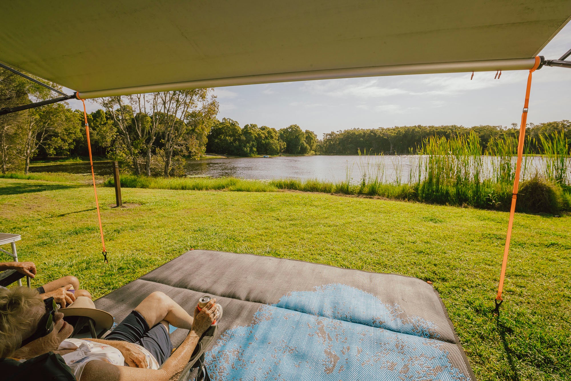 The Ground Puppy™ screw in peg holds mats securely while caravan and camping.
