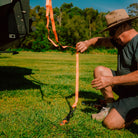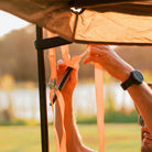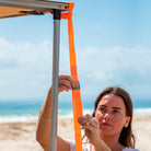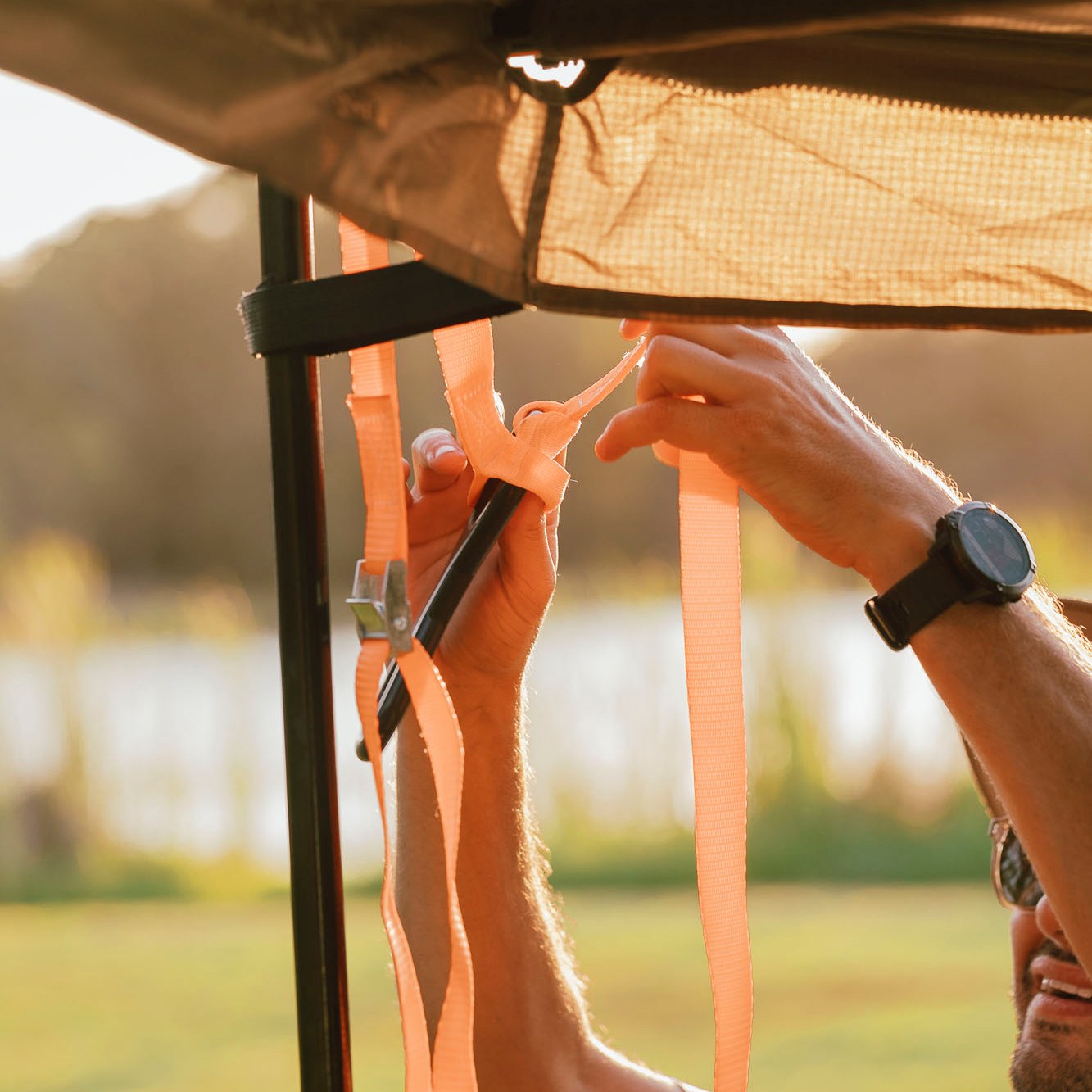 High viz Tie Down Straps help to secure awnings, tents and tarps. The Tie Down Straps are extremely versatile, and consist of two parts: