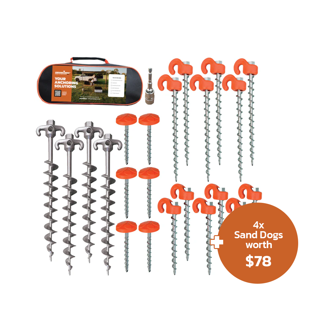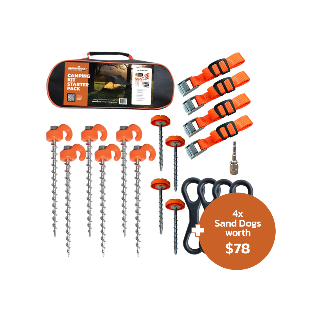 The Camping Starter Kit is designed and engineered to provide the most reliable anchoring security in challenging outdoor conditions.