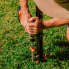 Peg won't go in: Check you're turning counterclockwise. Ensure adequate downward pressure. Try alternate location if ground is too hard or predrill hole using a 12mm masonry bit.