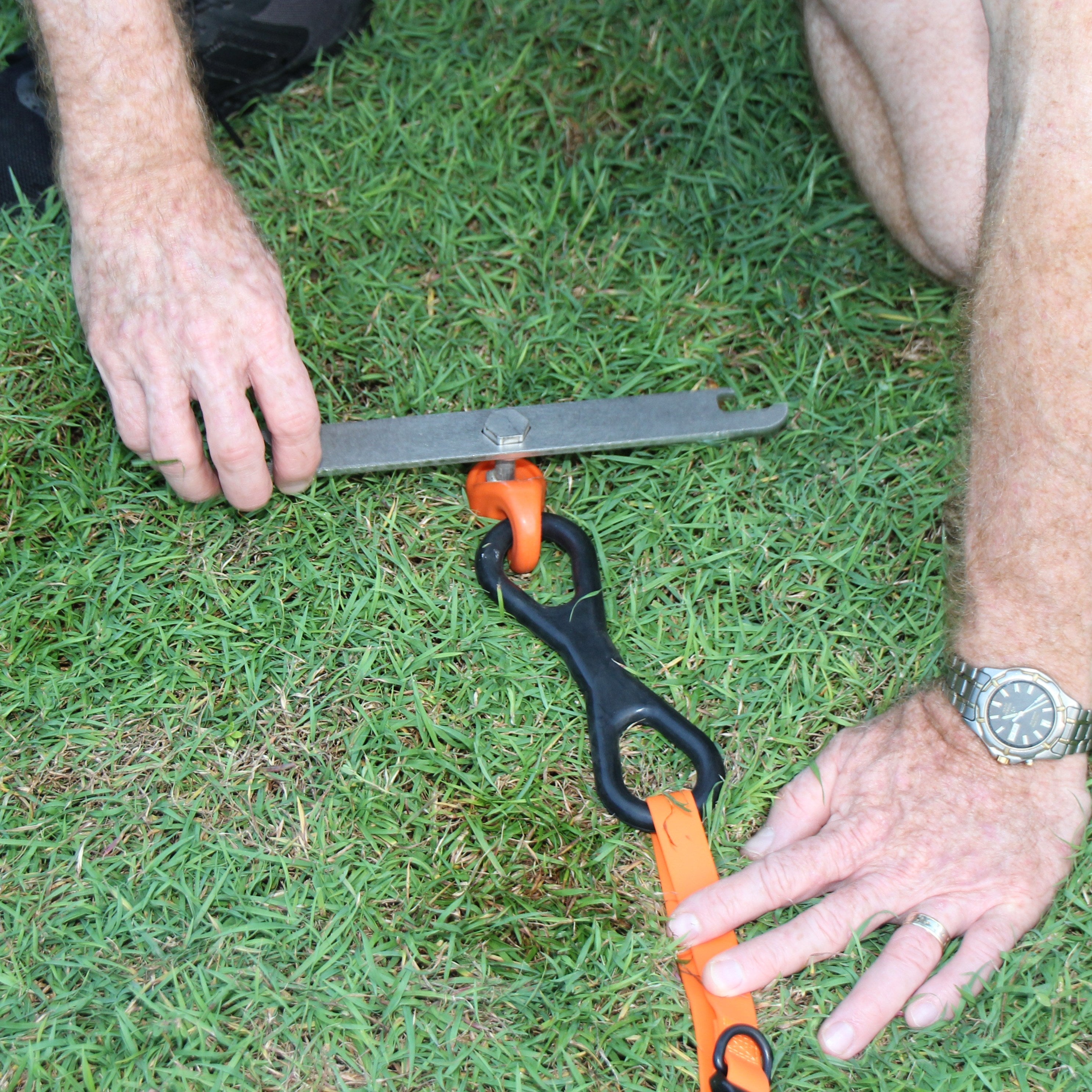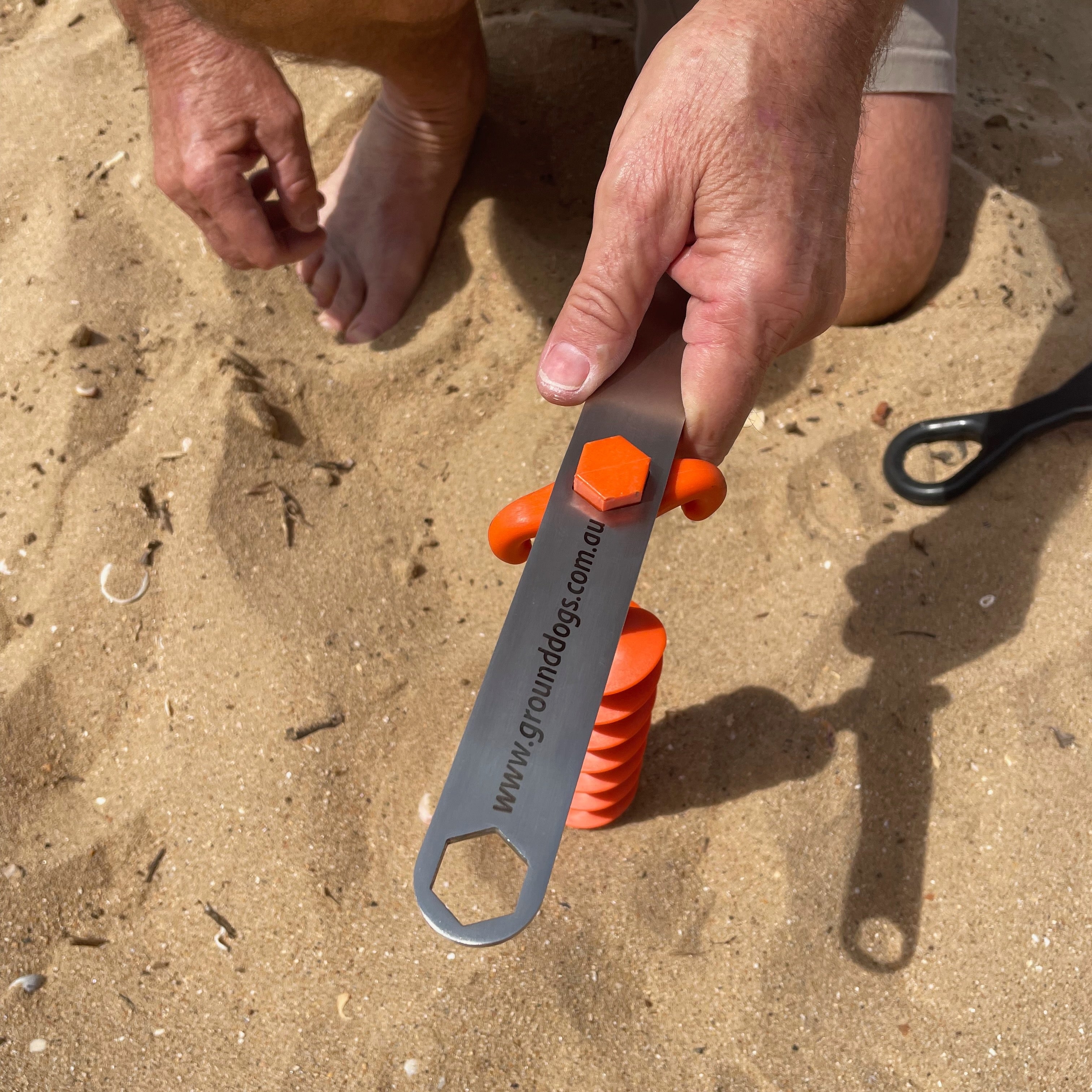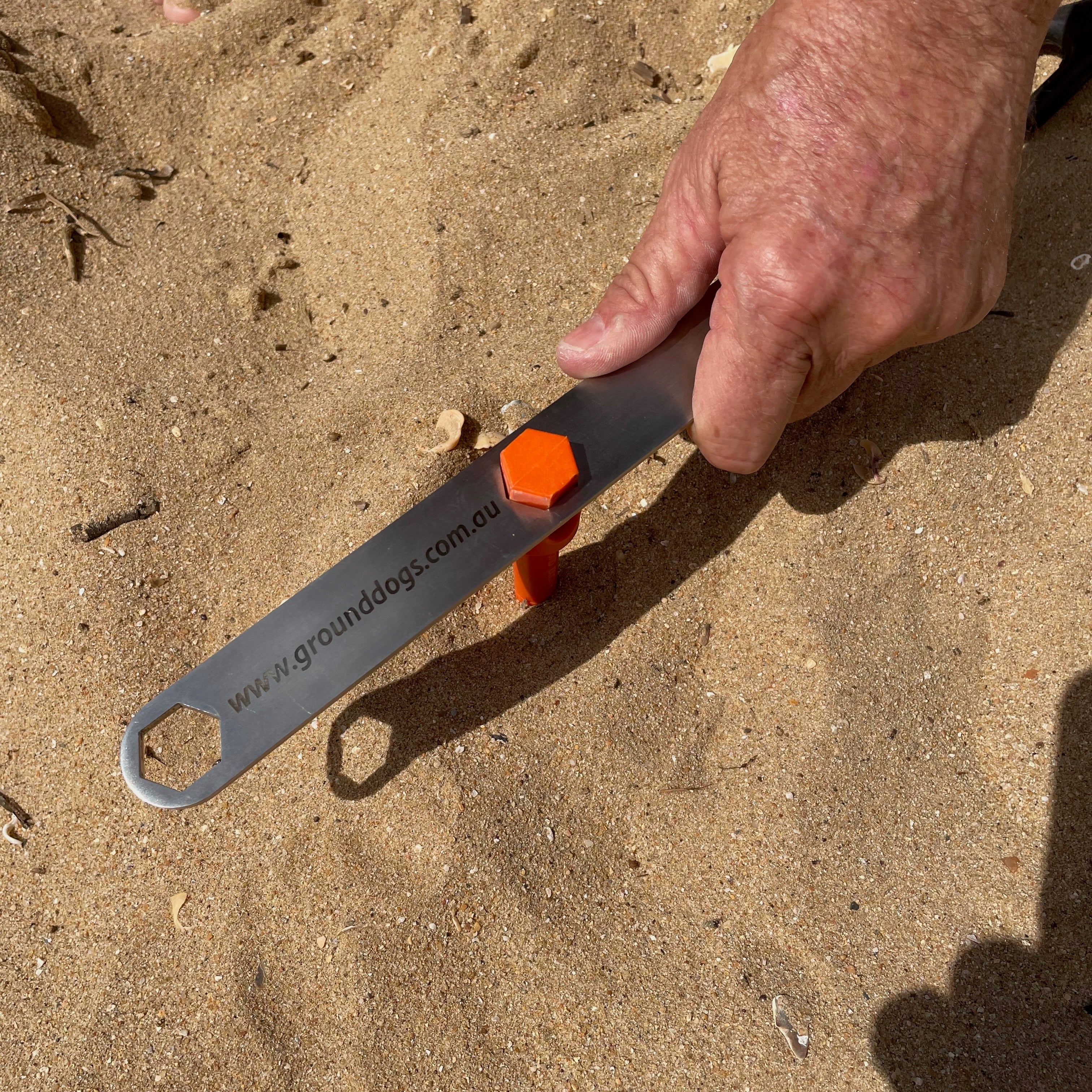 The Ground Dogs Hand Tool was designed to give users the freedom of being able to use any of the Ground Dog range of pegs without the need of a power drill. Whether you need to drive in a Pet Restraint Kit peg, or a Sand Dog peg at the beach, the Ground Dogs Hand Tool allows you to do the job easily.